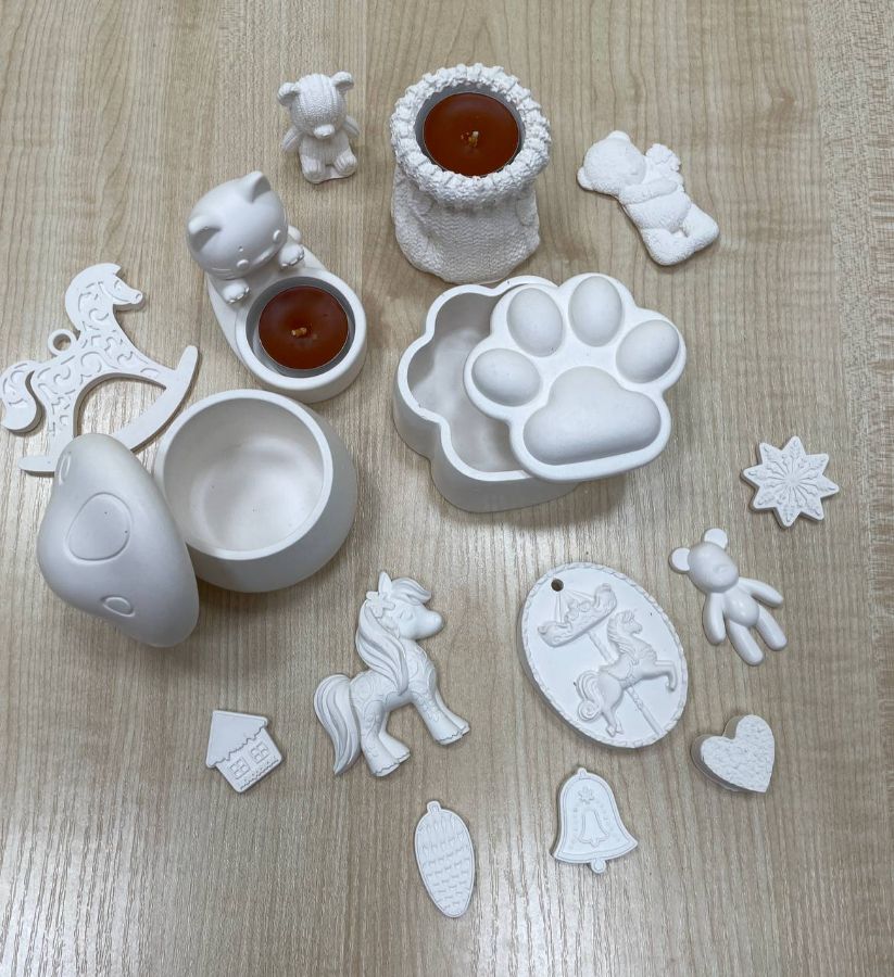 В пятницу, 12 декабря, с 19:00 до 21:00 раскрашиваем гипсовые шкатулки, подсвечники и украшения на ёлку.